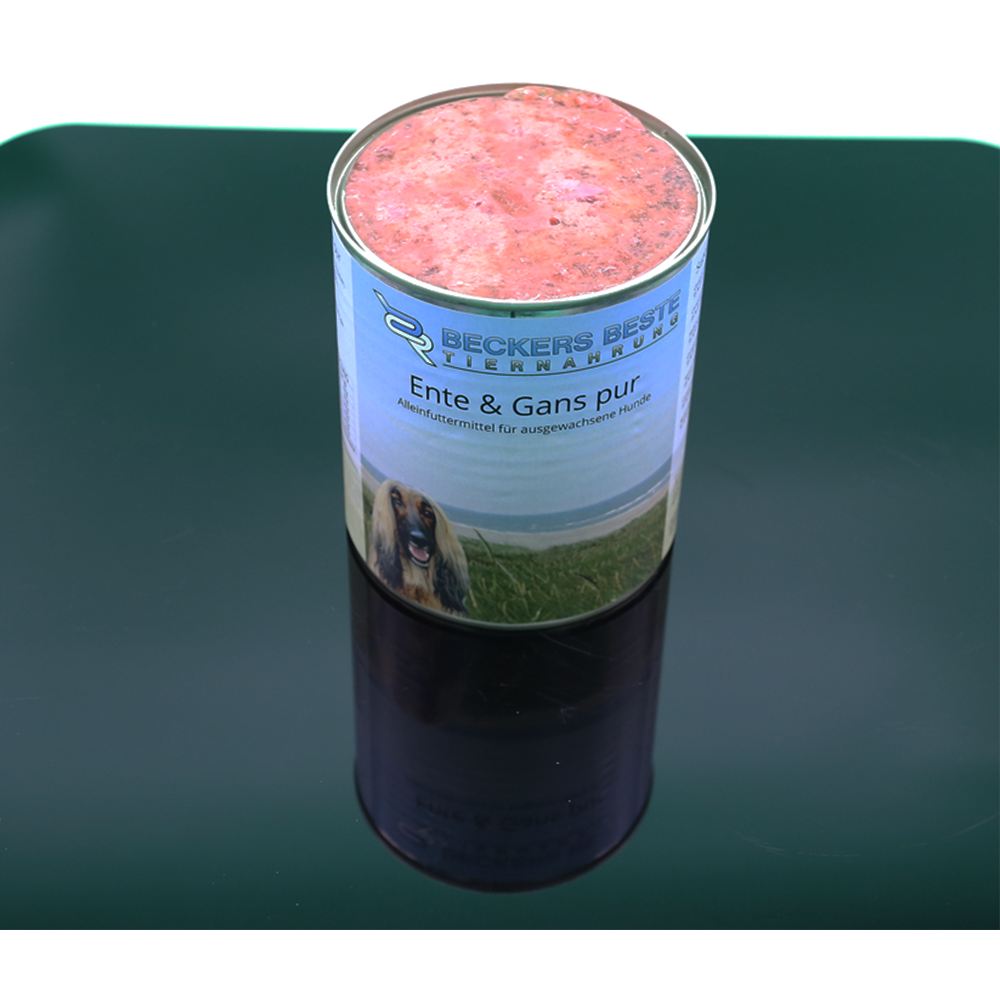Unser Nassfutter für Hunde mit zwei Proteinquellen von der Ente und der Gans von Beckers Beste Tiernahrung ist leicht verdaulich und das gesamte Produkt wird getreidefrei hergestellt.